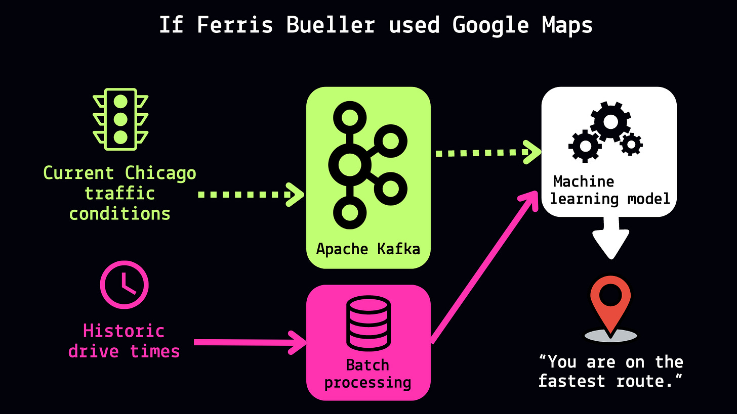 Imagine Ferris Bueller’s Day Off taking place in 2024. When Ferris uses Google Maps to get downtown, how does Google Maps know to avoid the parade traffic conditions? When he hops in an Uber (after dropping the Ferrari in the garage), how does Uber calculate surge pricing? When Sloane places a live bet at the Cubs game, how is the sports betting app making sure it’s Sloane and not fraud? And when Cameron is being a sad sack taking a sick day, how does his Netflix account know what shows to recommend?